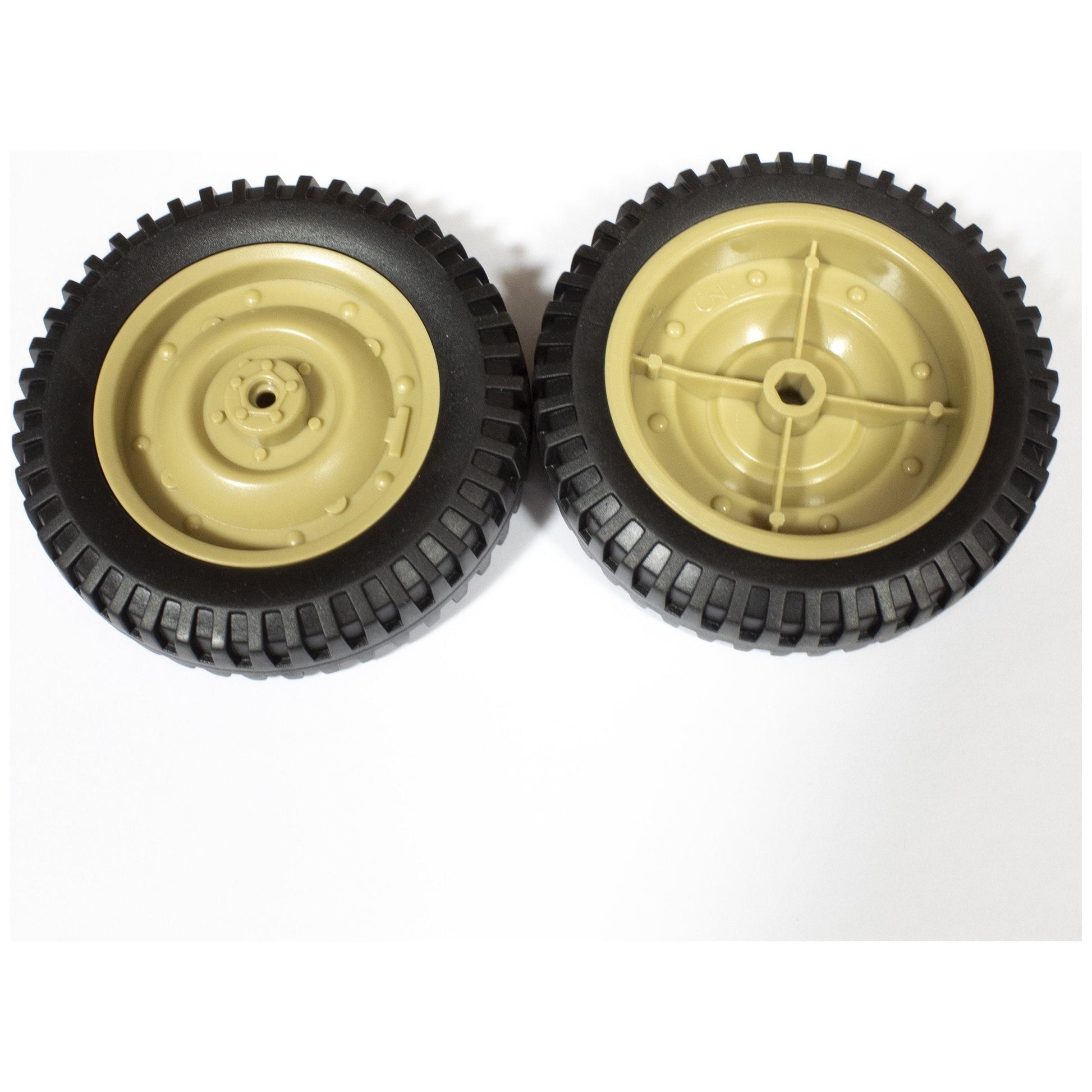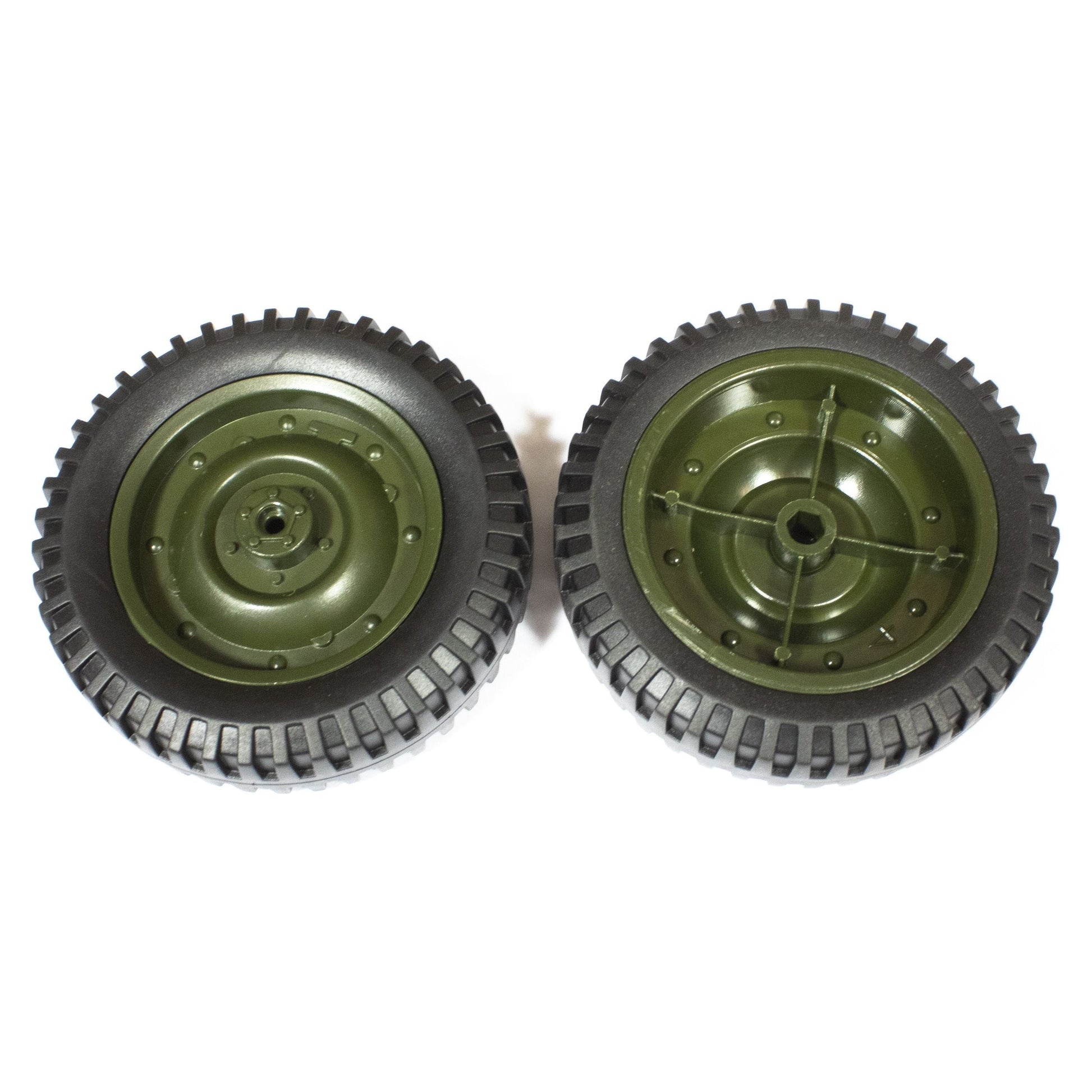 A pair (x2 total) of tires for the 1/10th scale Willys truck. Available in green or desert tan.